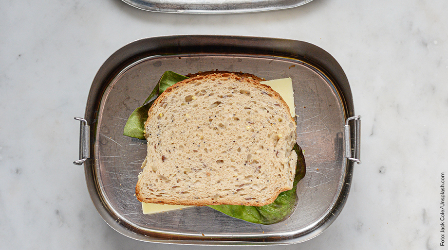 Ein weiterer Punkt auf den du achten kannst ist, wie du Speisen und Getränke transportierst. Egal, ob es sich um ein Vesperbrot oder um Obst und Gemüse handelt – du kannst alles umweltfreundlich in einer Brotdose mitnehmen und somit auf Alufolie und Plastiktüten verzichten. Denn allein für die Herstellung eines Kilogramms rohen Aluminiums entstehen 17 kg CO2 und jede Menge ätzender Rotschlamm. Ebenso empfiehlt sich der Gebrauch einer umweltfreundlichen und wiederverwendbaren Trinkflasche. Wer seine leere Flasche mit Leitungswasser oder an einem Trinkbrunnen auffüllt, spart sich zudem auch das Tragen von großen Flaschen für einen langen Tag.